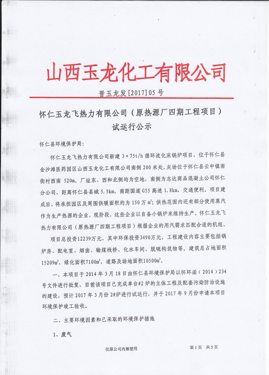 懷仁玉龍飛熱力有限公司試運(yùn)行公示