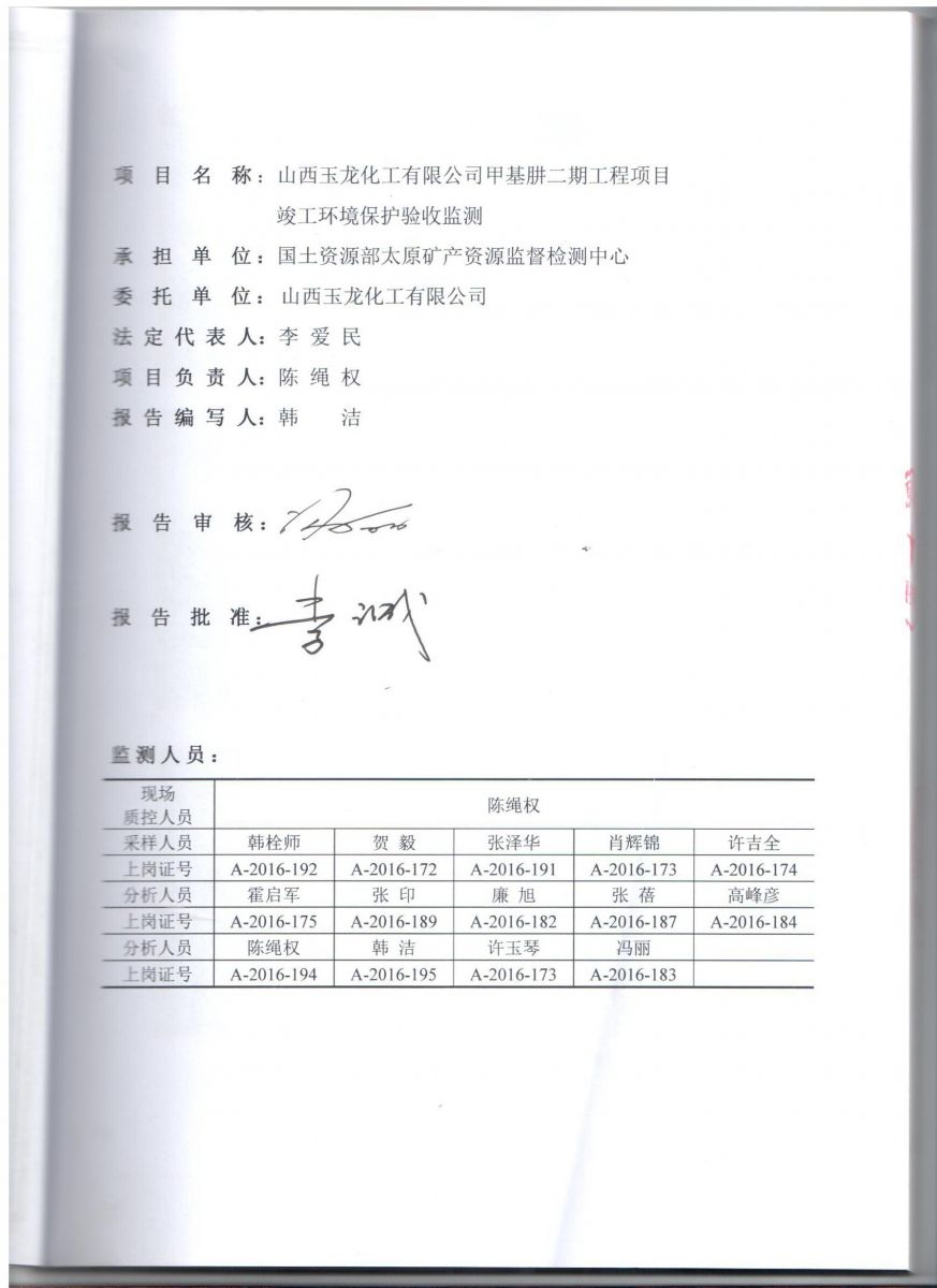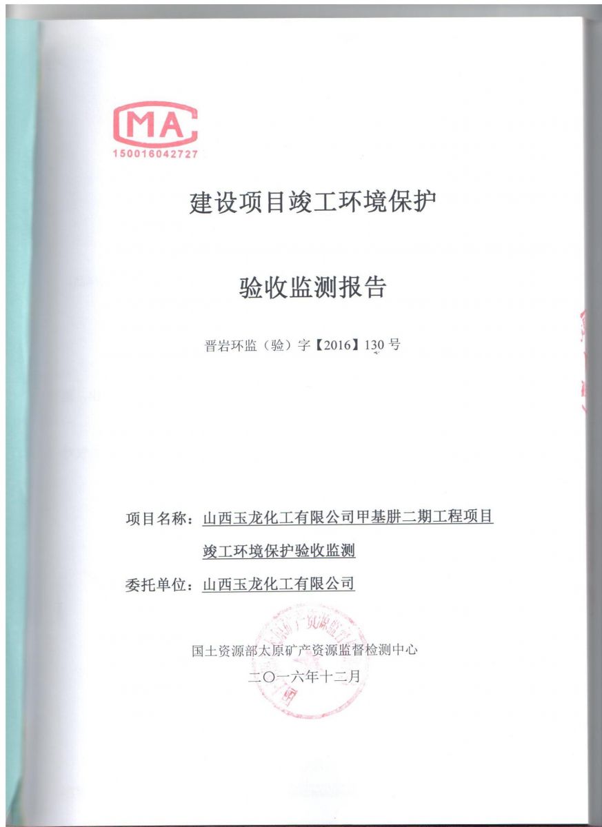 甲基肼二期工程建設(shè)項目竣工環(huán)境保護驗收監(jiān)測報告公示